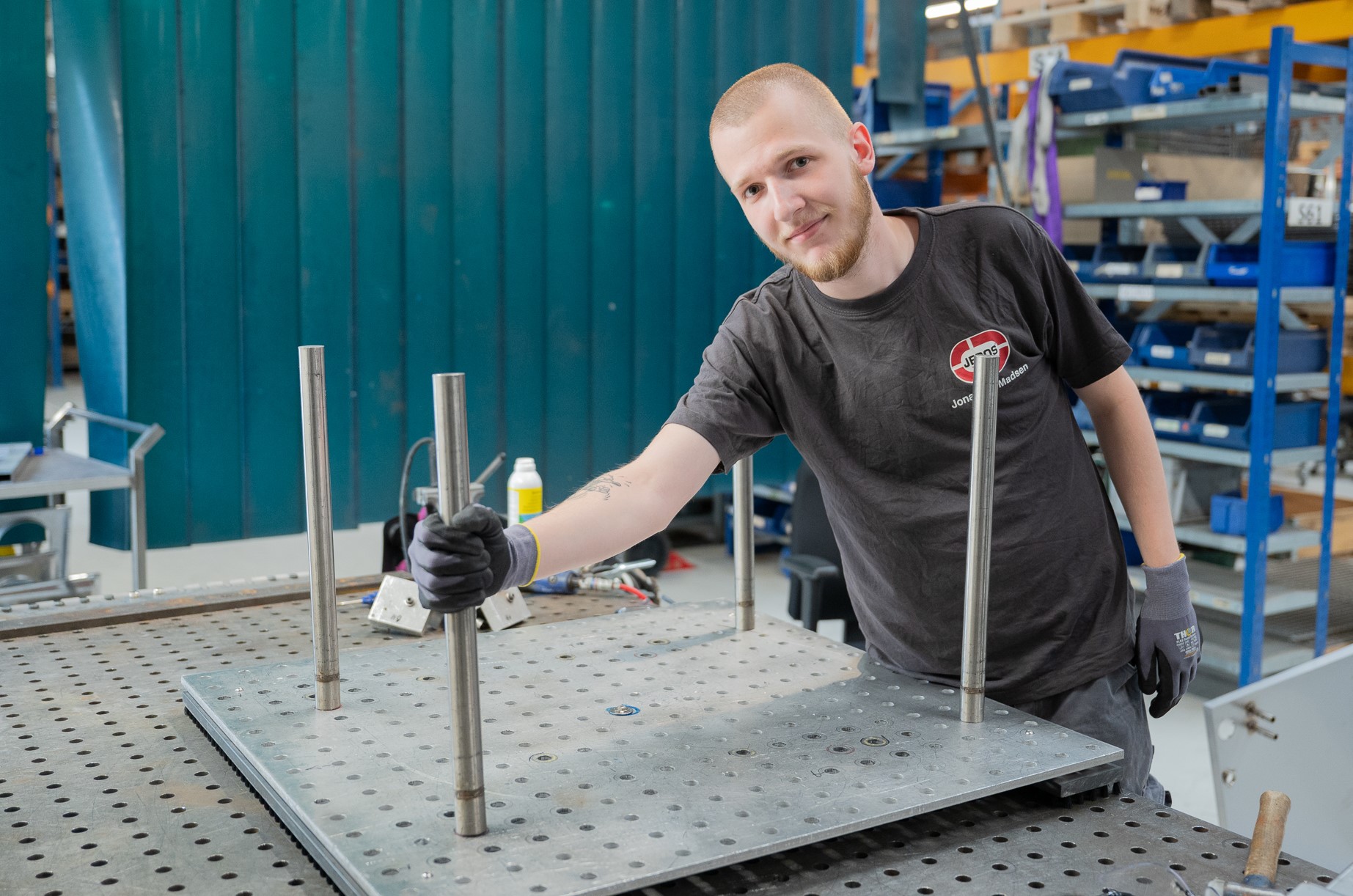 Men fordi jeg er enormt glad for at stå tidligt op, producere noget og få noget ud af dagen, skriver jeg til min kammerat, Kim, og spørger, om JEROS ikke mangler folk? Kim er selv rustfast klejnsmed og har været en del af JEROS i en menneskealder. Heldigvis vender han positivt tilbage, og jeg bliver inviteret til samtale, hvorefter jeg bliver ansat som ungarbejder.